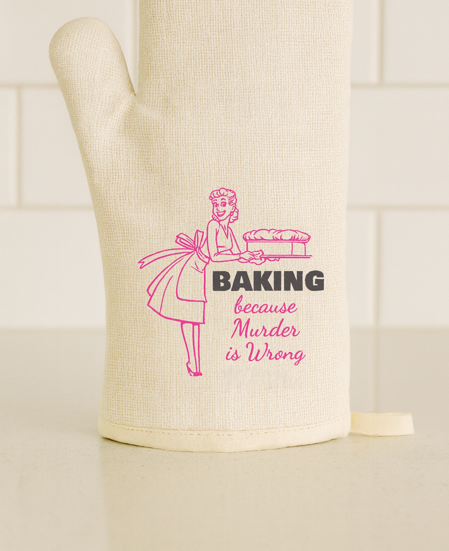 Baking Because Murder is Wrong Heat Resistant Quilted Fun Oven Mitt for Bold Bakers